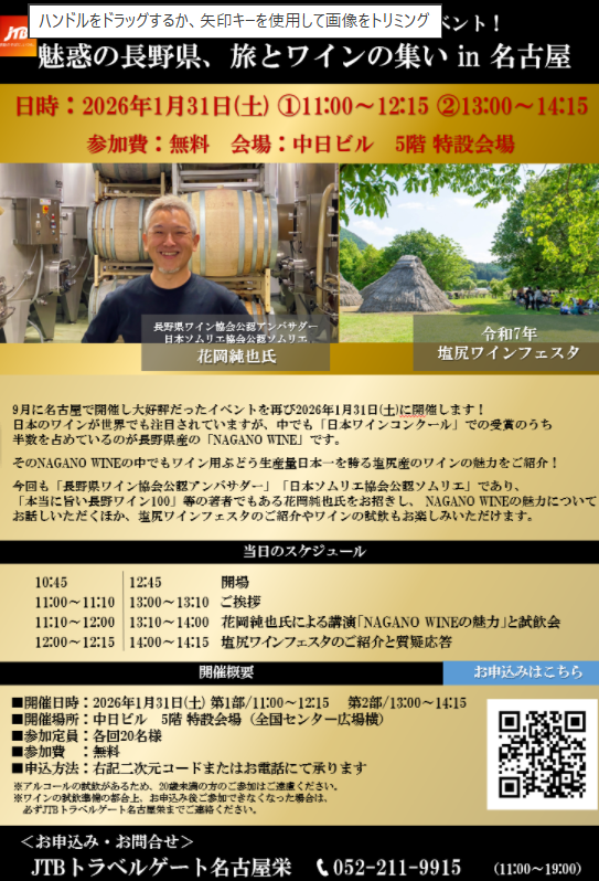 「魅惑の長野県、旅とワインの集いin名古屋」を開催します!