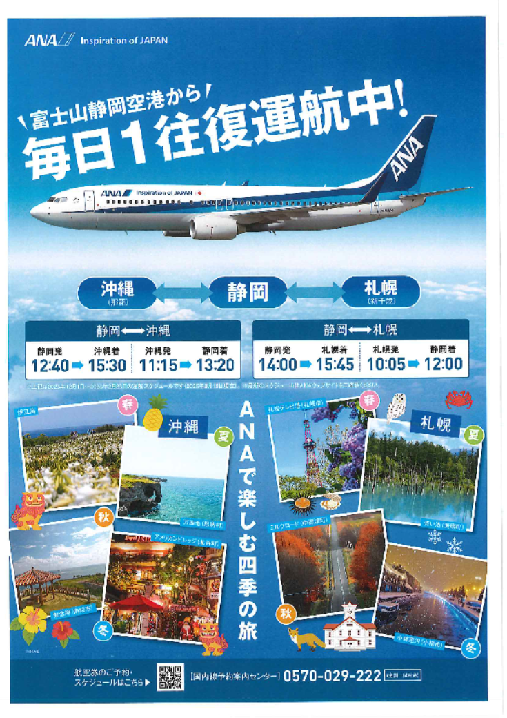 静岡発着ANA利用プラン(静岡⇔新千歳・静岡⇔那覇)をご予約の