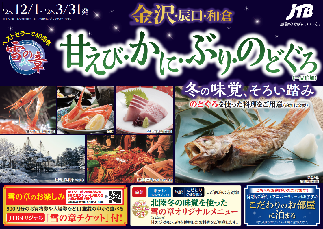 ぜひこの時期に、北陸の魅力を満喫するご旅行へお出かけください。