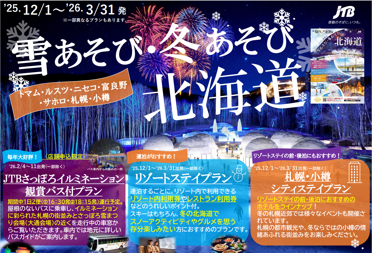 イルミネーション鑑賞、雪あそび、温泉、街歩きまで、大人も子供も楽しめる冬旅です♪