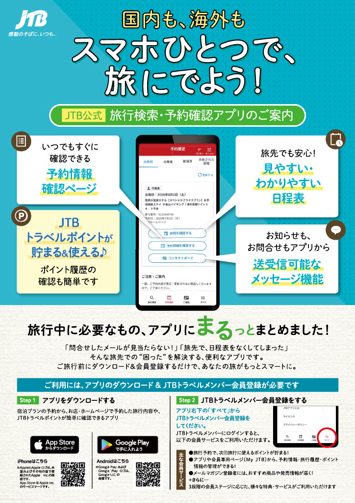 ■さらにおすすめ! JTBトラベルメンバー(JTBの会員サービス)に登録すると、予約後から旅先でも使えて便利です♪