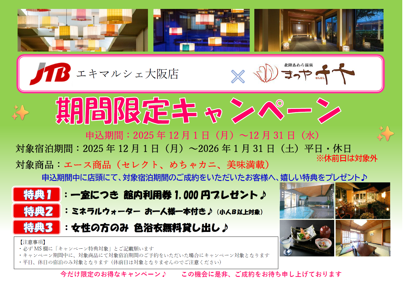 2025年12月1日(月)~2026年1月31日(土)の平日・休日(休前日は対象外)