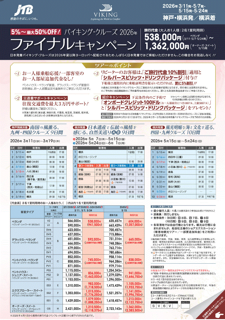 日本発着クルーズは2026年2月、3月、5月のコースにて終了してしまいます!