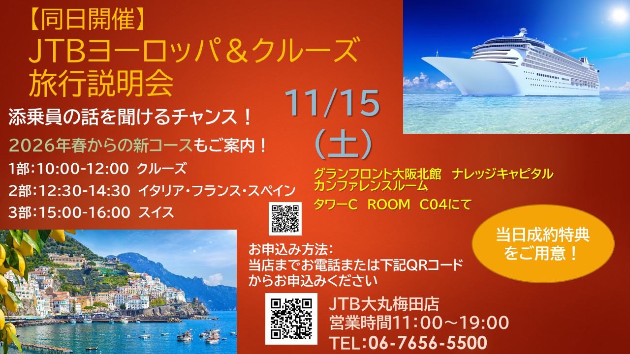 ■11月15日(土)開催 JTB旅行説明会【事前予約制・参加費無料】