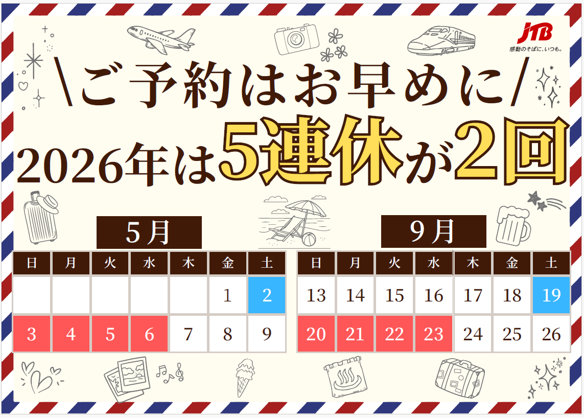 期間内に新規会員登録&ご旅行出発で、JTBトラベルポイントを【最大2,000ポイント】GET!