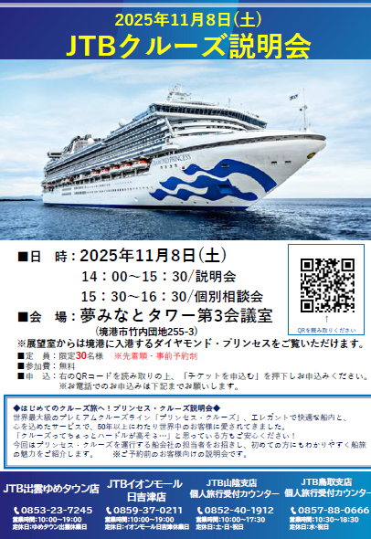 展望室から境港に入港するダイヤモンドプリンセスをご覧いただけます🚢