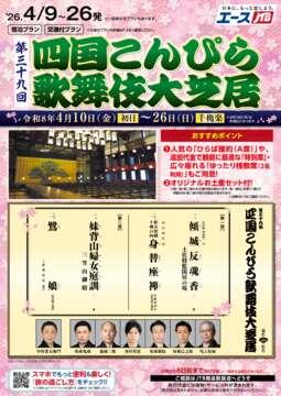 次回の4月公演で三十九回を迎えます。第一回公演は昭和60年6月。「再桜遇清水」「俄獅子」の演目で中村吉右衛門、澤村宗十郎、澤村藤十郎らの人気役者が出演し、大盛況となりました。それから毎年一回行われるようになり、現在では讃岐路に春を告げる風物詩となっています。また開催前日の4月9日には成功祈願祭である「お練り」と呼ばれる町廻りが行われます。役者が人力車に乗って顔見世を行い、歓迎の紙吹雪が舞う中、こんぴらの町は歌舞伎一色に染まります。