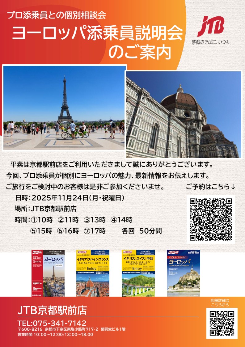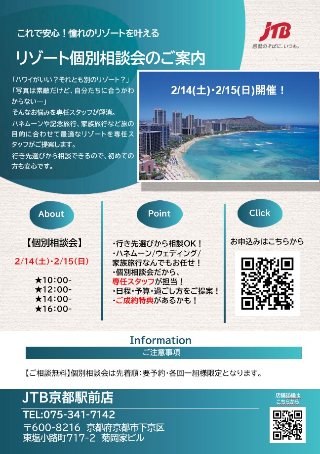 最寄りのJTB店舗で旅の相談&お支払いをすることができますよ。(*)