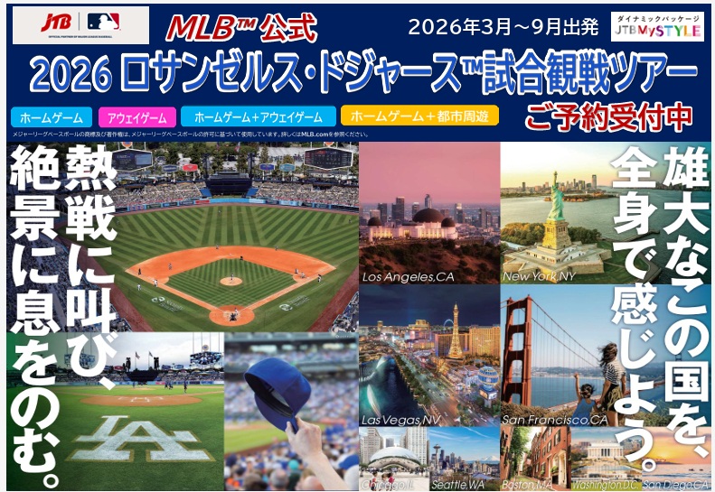 JTBはMLB™(メジャーリーグベースボール)のアジアにおけるトラベル&ホスピタリティ事業のオフィシャルパートナーです。さらに、2025年に日本の旅行会社として初めての「オフィシャルパートナー・オブ・ザ・ロサンゼルス・ドジャース」となりました。