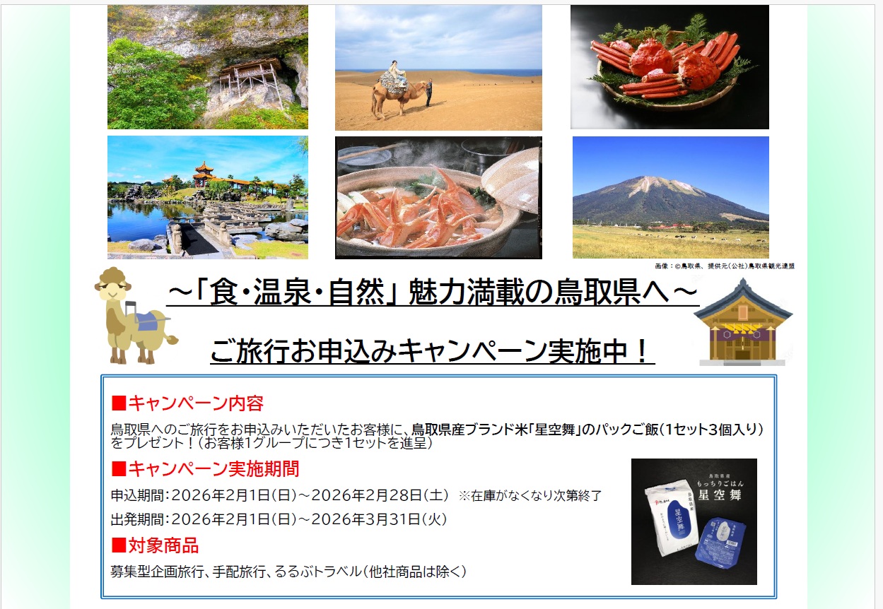 【鳥取県ご宿泊お申込みキャンペーン】