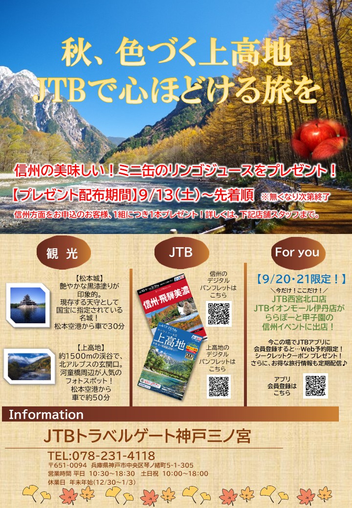 信州方面のご旅行をお申込みいただいたグループ1組につき1本、