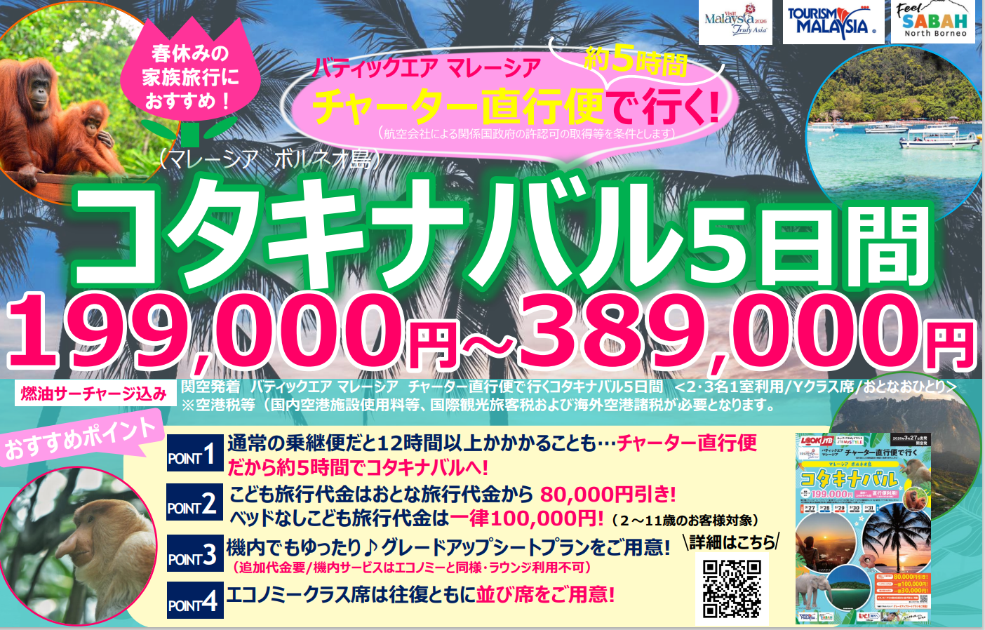 ・ベッドなしこども旅行代金一律100,000円と、春休みのご家族旅行・三世代旅行にぴったりのプランです😲