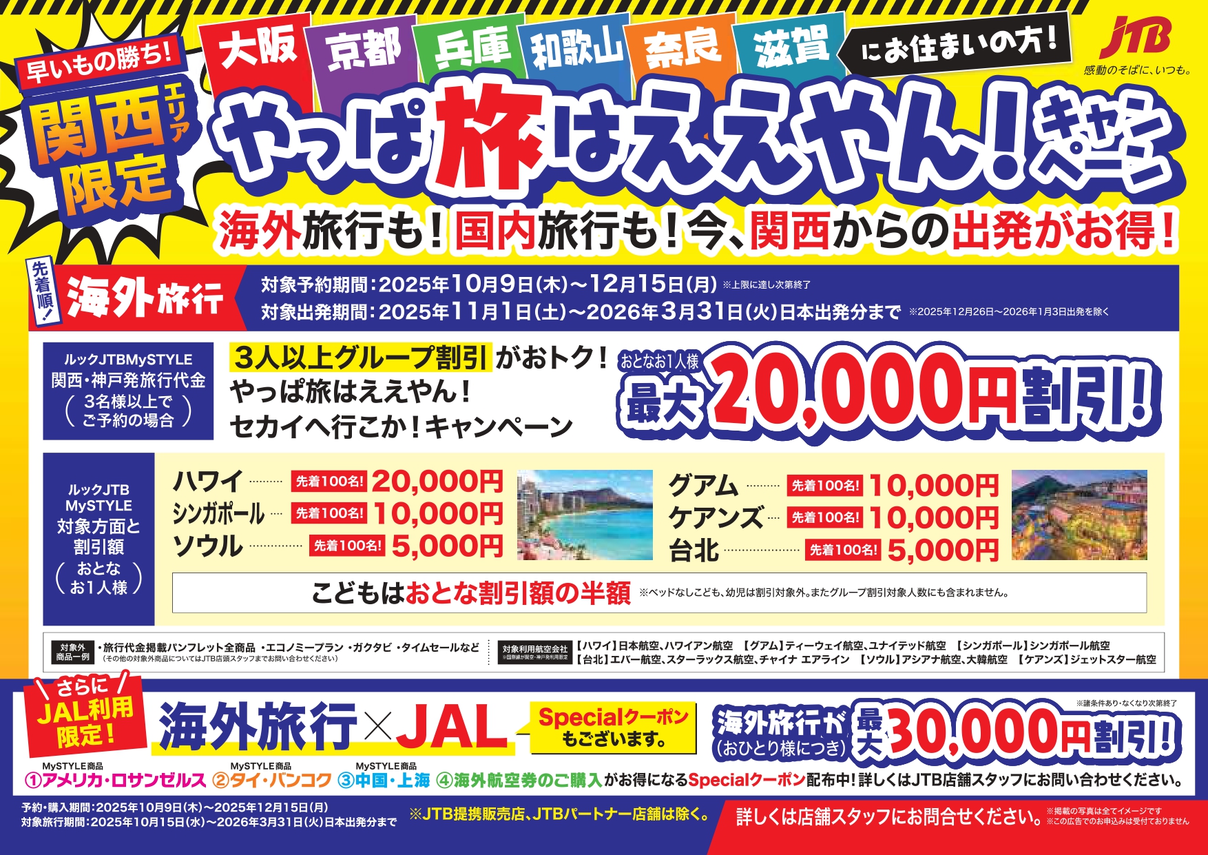 ●対象出発期間:2025年11月1日(土)~2026年3月31日(火)日本出発分まで