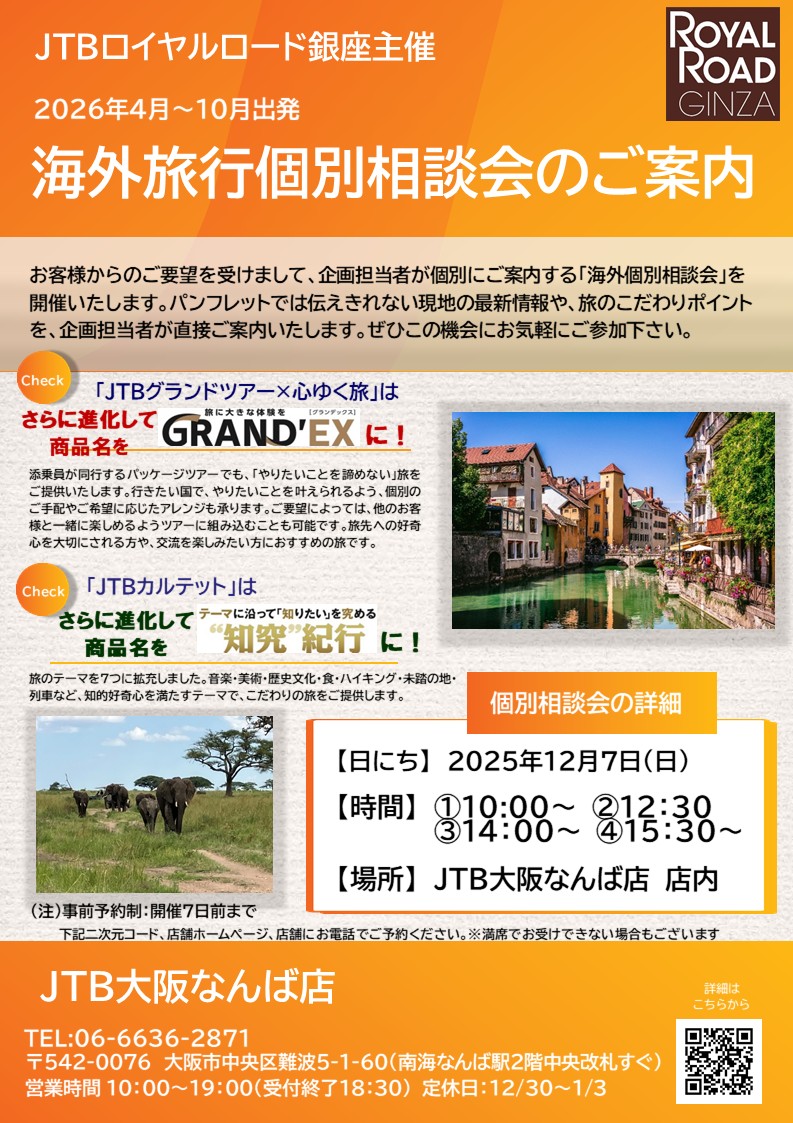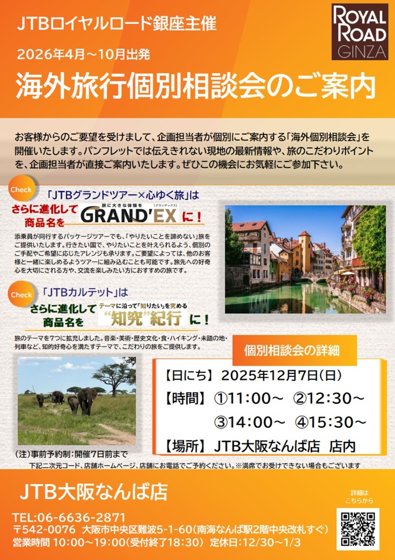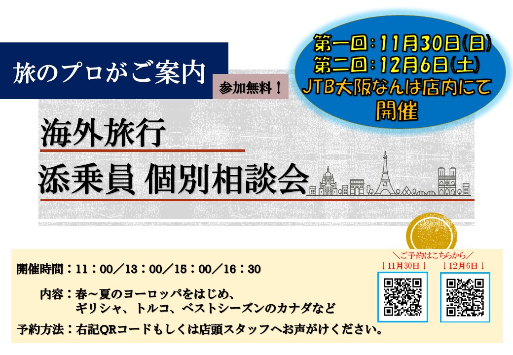 毎回大好評の添乗員個別相談会をなんば店内にて開催します!
