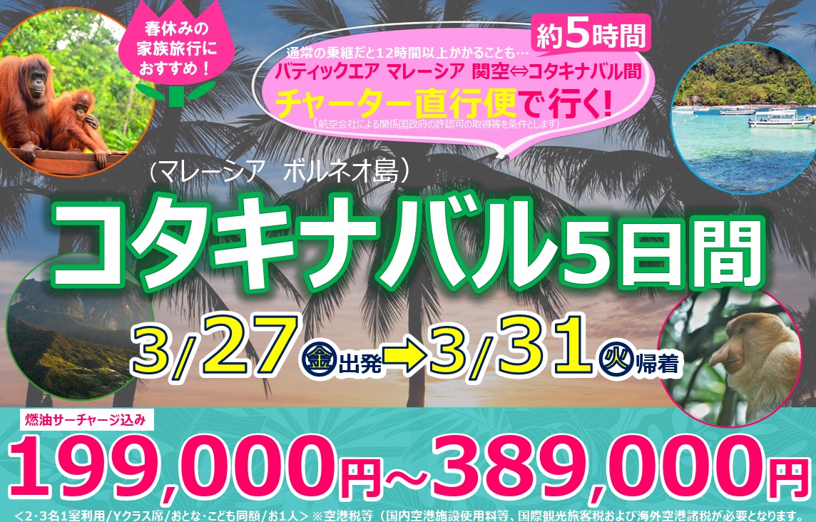 例:おとな2名・こども1名の3名家族の場合、こども1名は往復の航空機代のみでご出発頂けます。