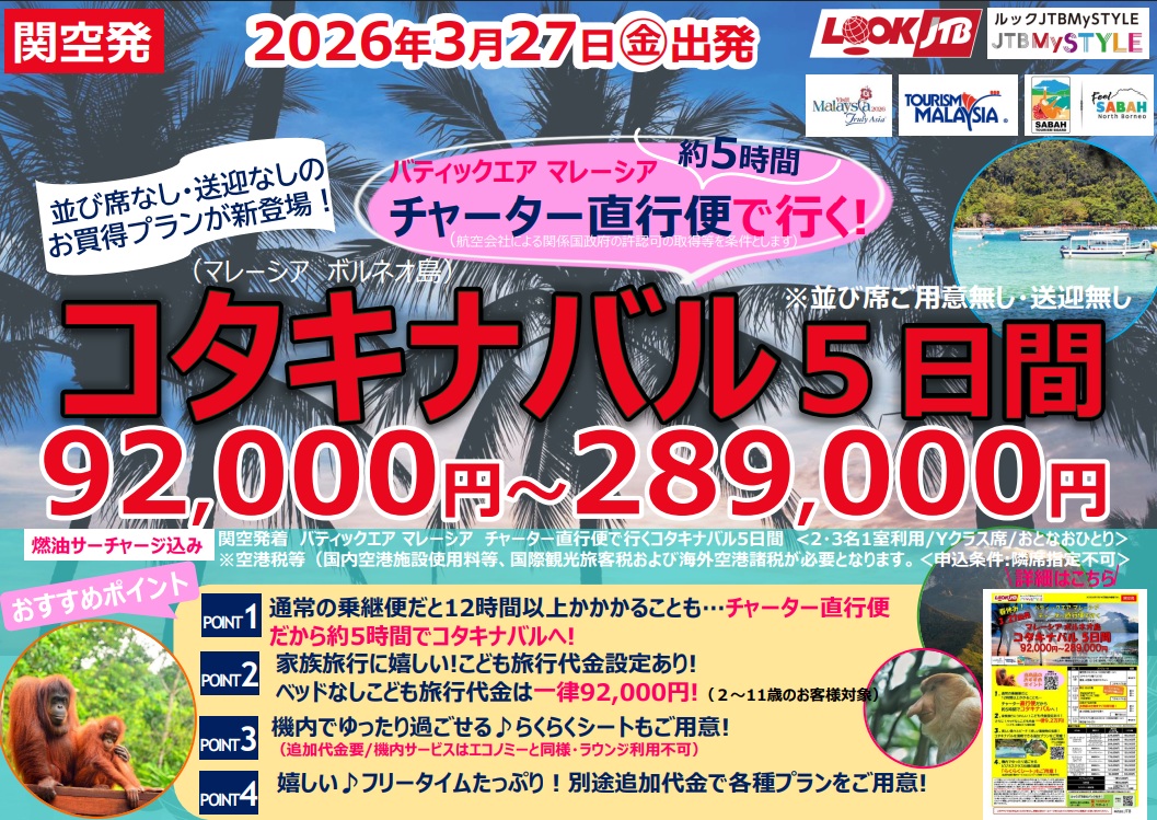 春休みのボルネオ島チャーター便登場!