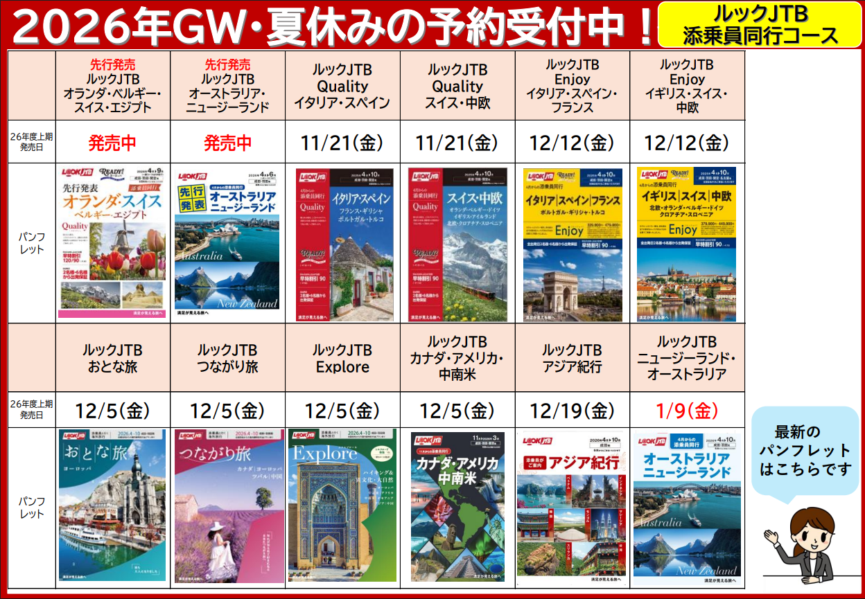 【海外旅行】2025年11月1日(土)~2026年3月31日(火)日本出発分まで
