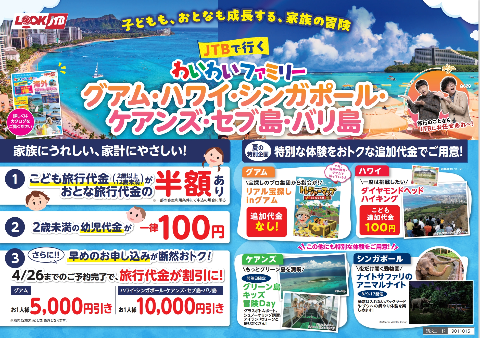 ⇒子ども代金が半額・2歳未満の幼児代金が一律100円・早期お申込み割引
