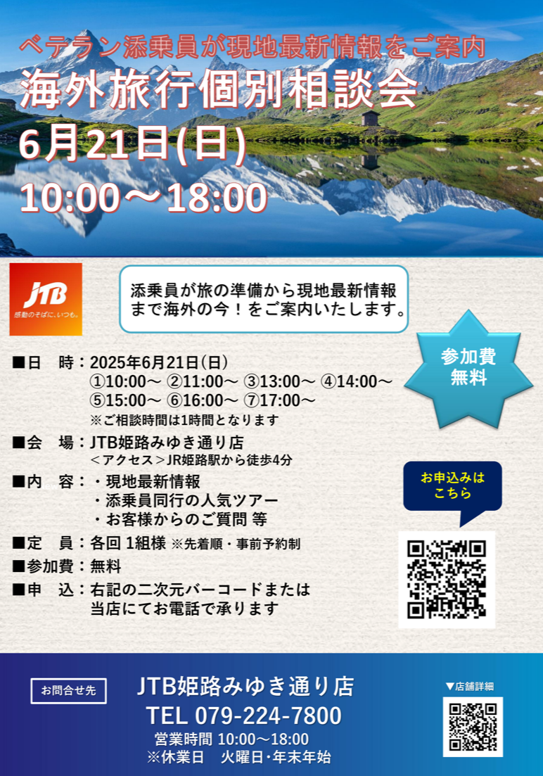 最寄りのJTB店舗で旅の相談&お支払いをすることができますよ。(*)