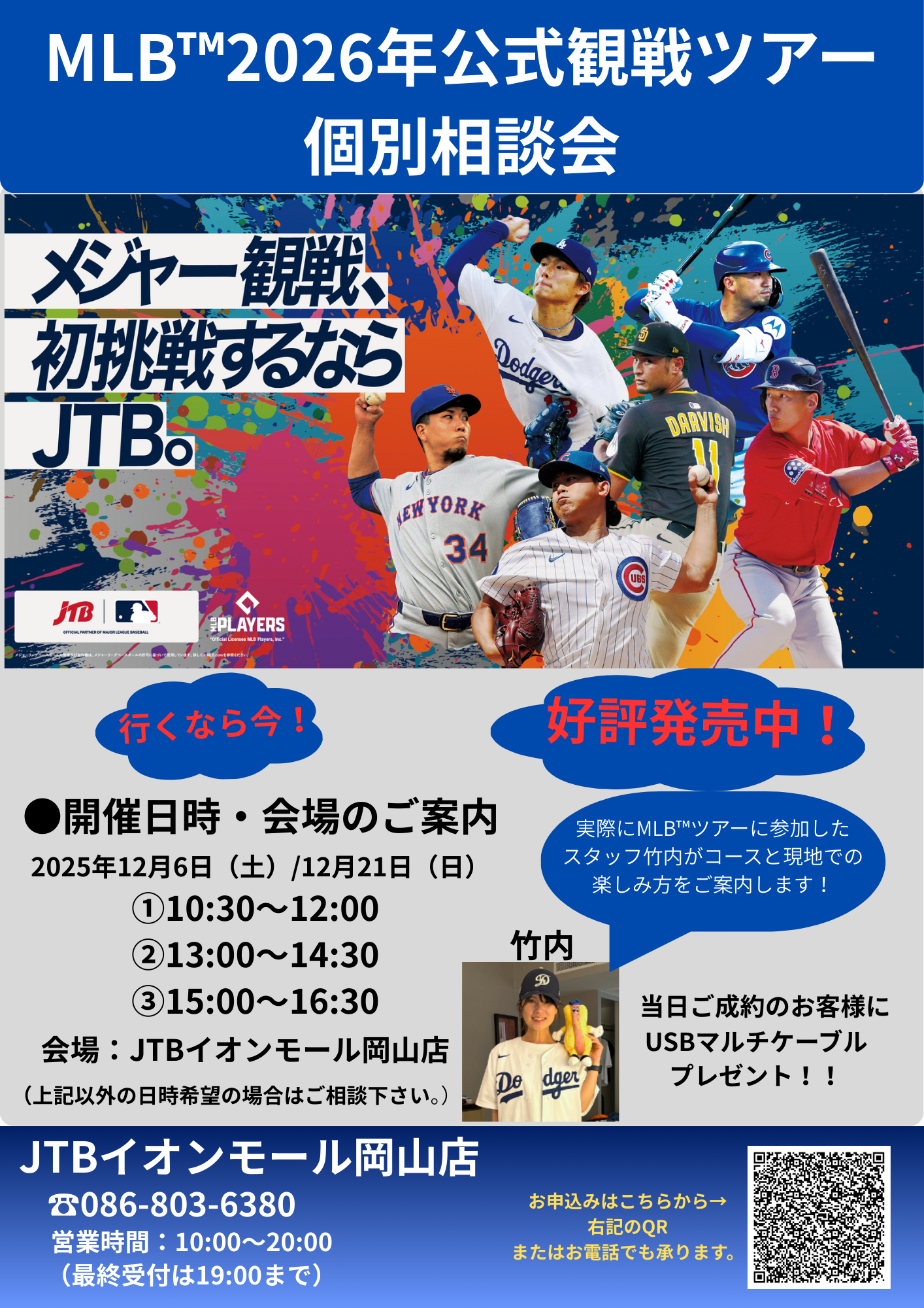 ★詳細・ご予約はJTBイオンモール岡山店までお気軽にお問い合わせください!