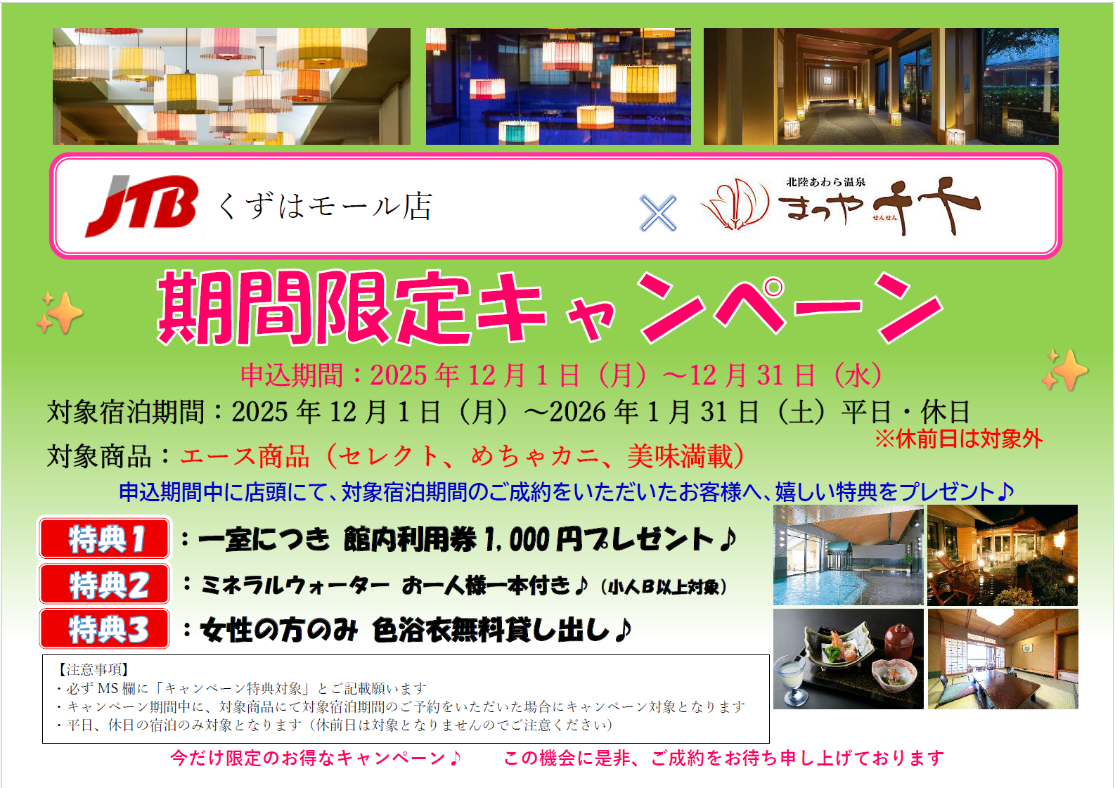 2025年12月1日(月)~2026年1月31日(土)の平日・休日(休前日は対象外)