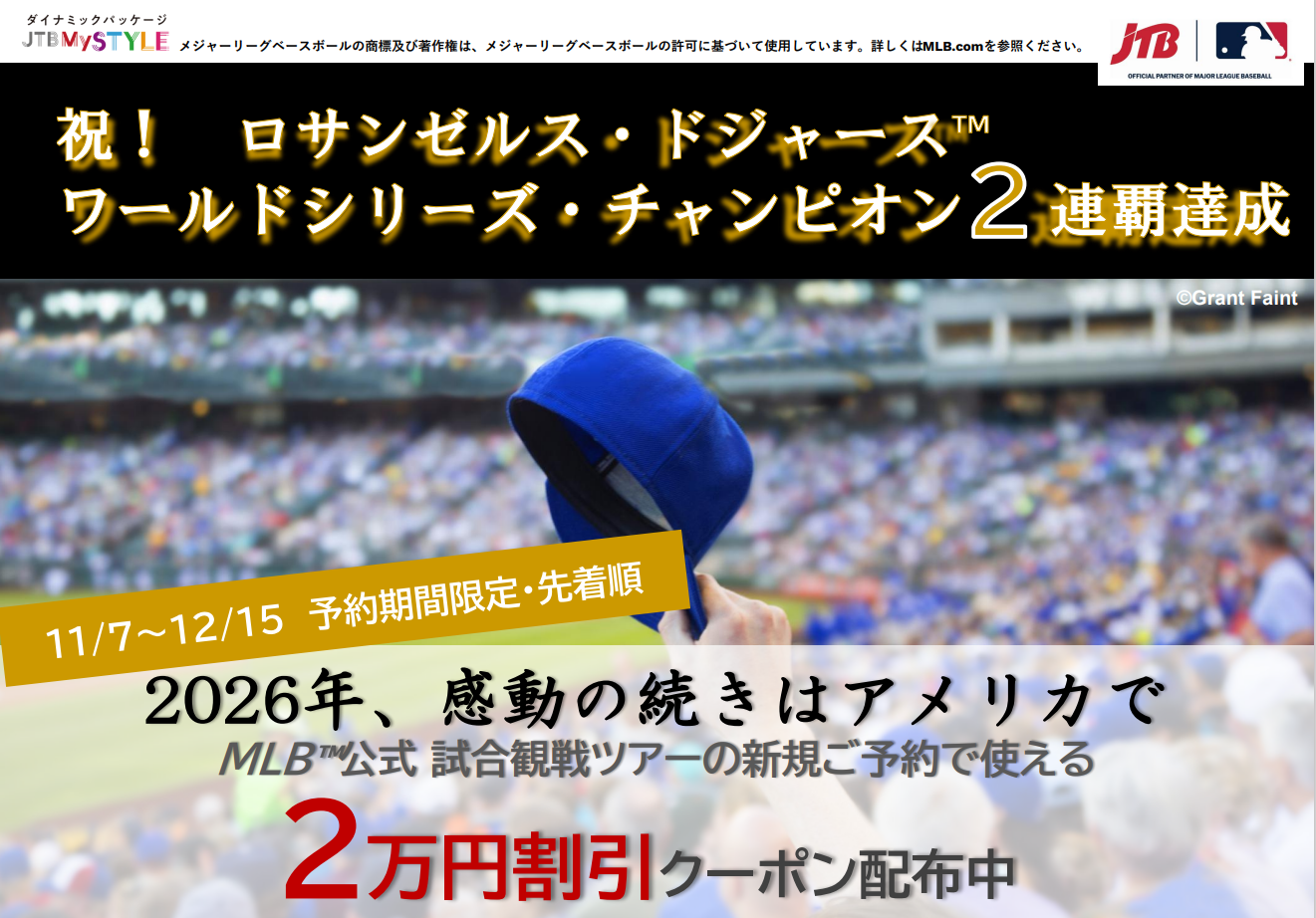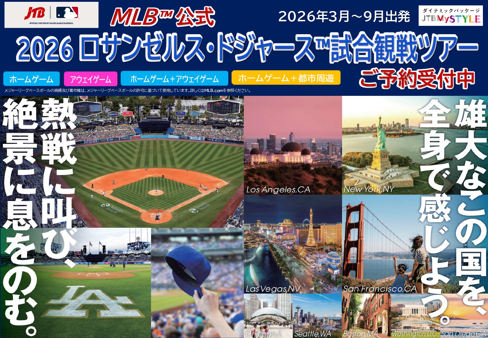 JTBはMLB™(メジャーリーグベースボール)のアジアにおけるトラベル&ホスピタリティ事業のオフィシャルパートナーです。さらに、2025年に日本の旅行会社として初めての「オフィシャルパートナー・オブ・ザ・ロサンゼルス・ドジャース」となりました。
