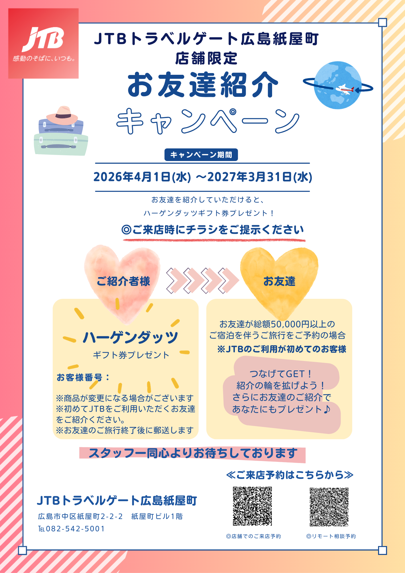 ※店舗・旅の予約センター・リモート相談にてご予約のお客様限定!(Web 申込は対象外)