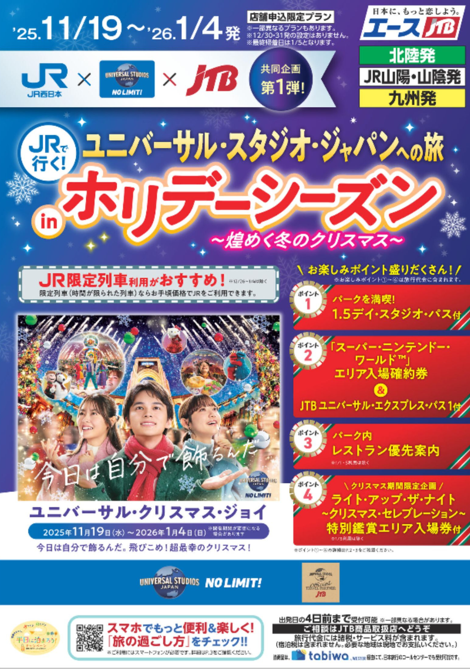 【JRで行く!ユニバーサル・スタジオ・ジャパンへの旅 in ホリデーシーズン~煌めく冬のクリスマス~】が登場!