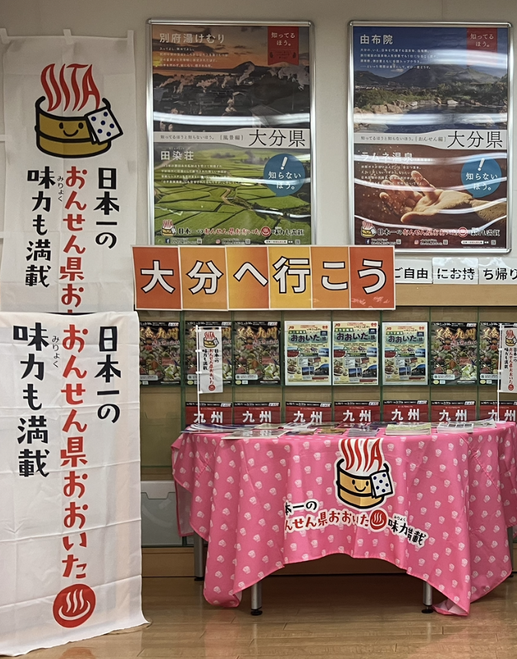 当店では、期間限定で大分のガイドブックやたびマップをご用意したキャンペーンを実施中。
