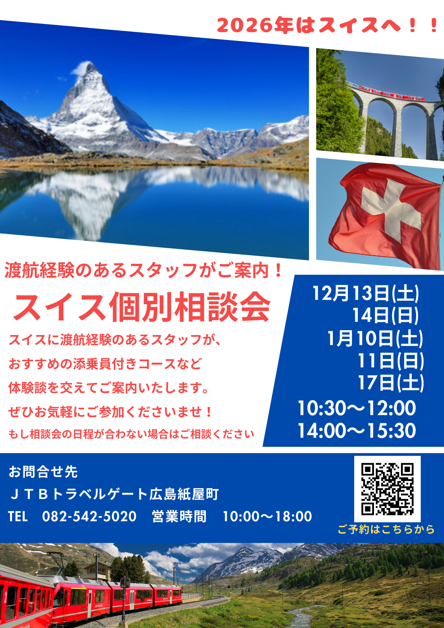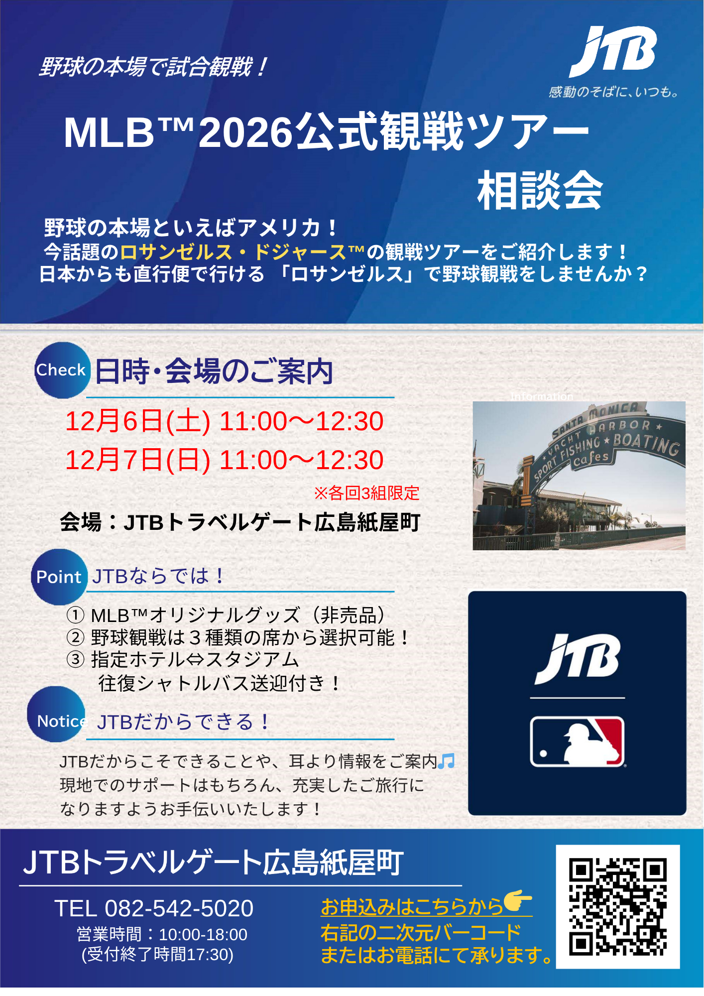 詳細は、JTBトラベルゲート広島紙屋町までお問い合わせください。