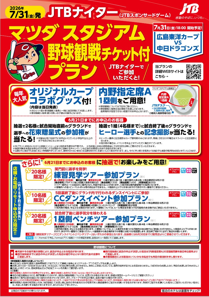 JTBならではの特典満載プランで、特別な野球観戦をお楽しみください。