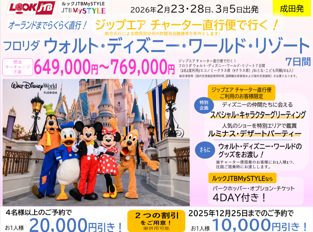 オーランドまでラクラク直行便利用✈️フロリダのウォルト・ディズニー・ワールド・リゾートで過ごす7日間はいかがですか🎈