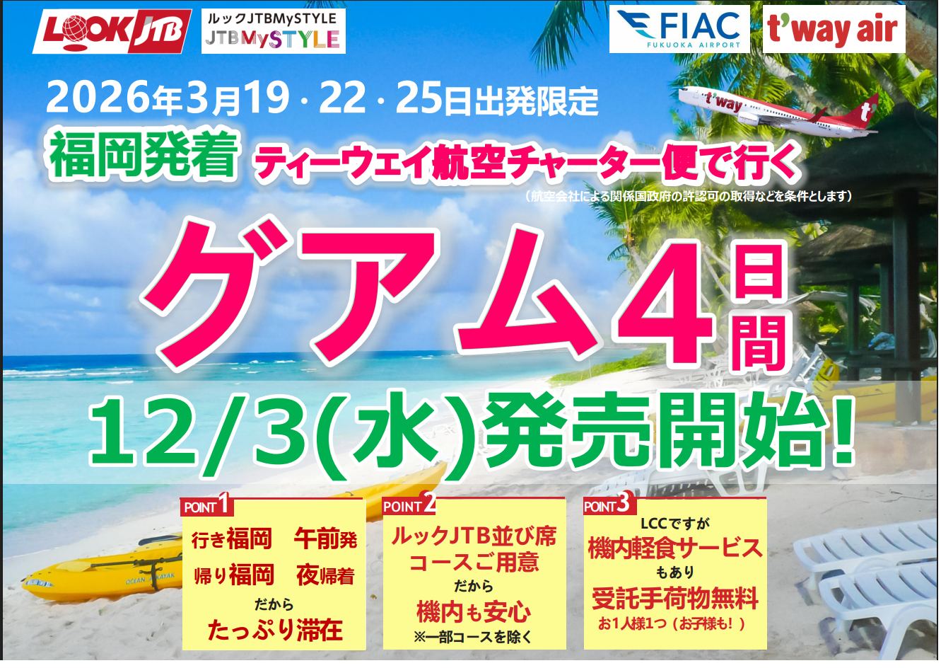 ■航空会社:福岡発着 ティーウェイ航空チャーター直行便利用