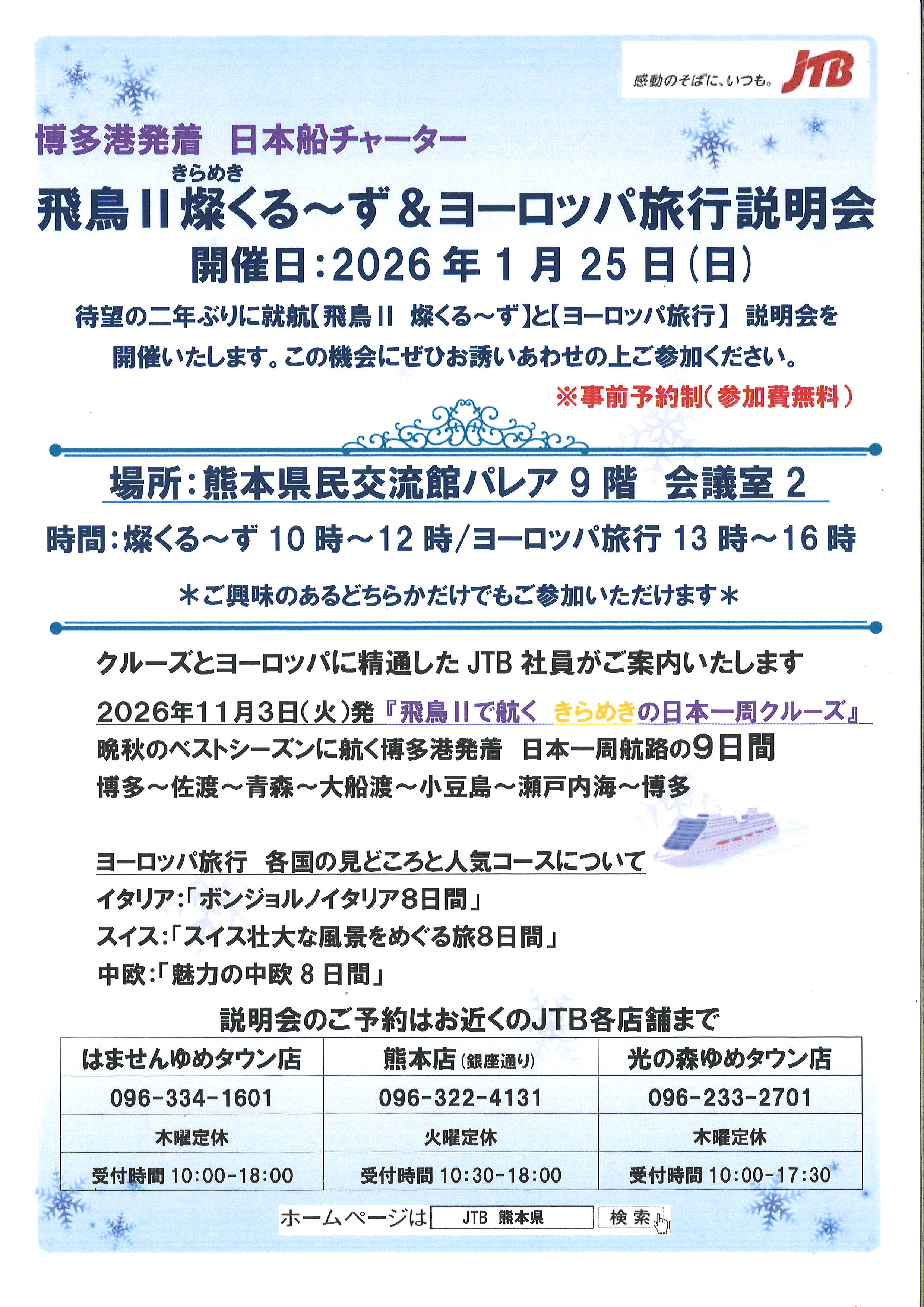 JTB商品取り扱い店舗へ是非ご相談くださいませ。お待ち申し上げております♪
