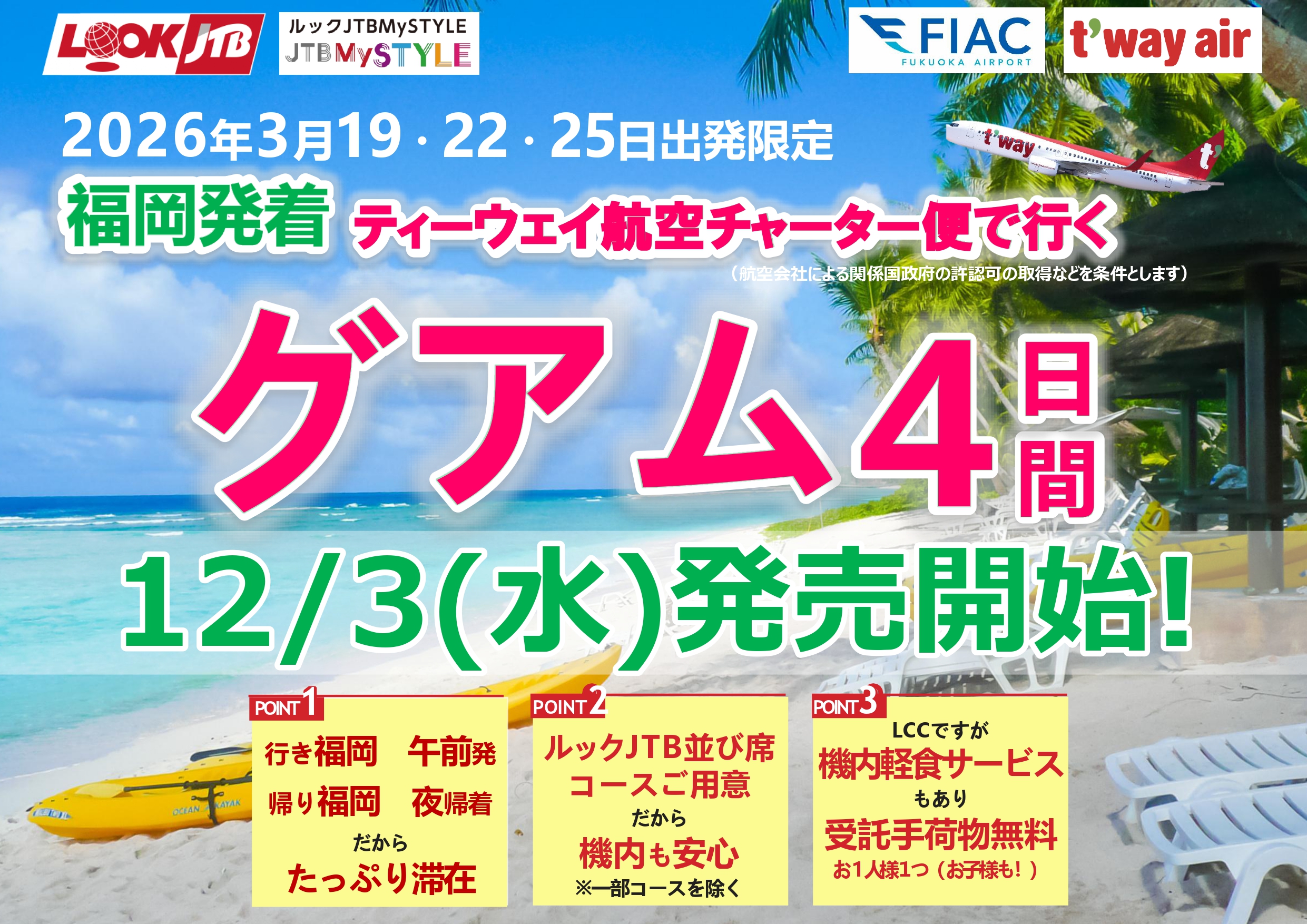 通常、日本国内で乗継が必要なグアムですが、チャーター直行便の場合、片道約4時間のフライトとなります🛫
