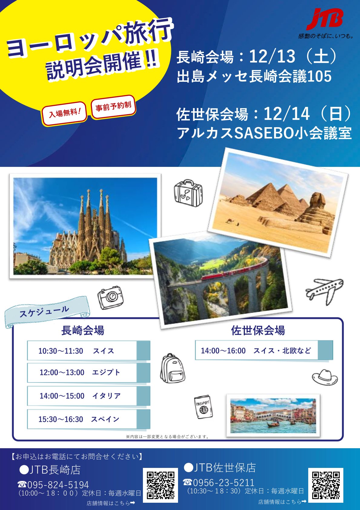 詳細・ご予約はJTB佐世保店までお気軽にお問い合わせください!
