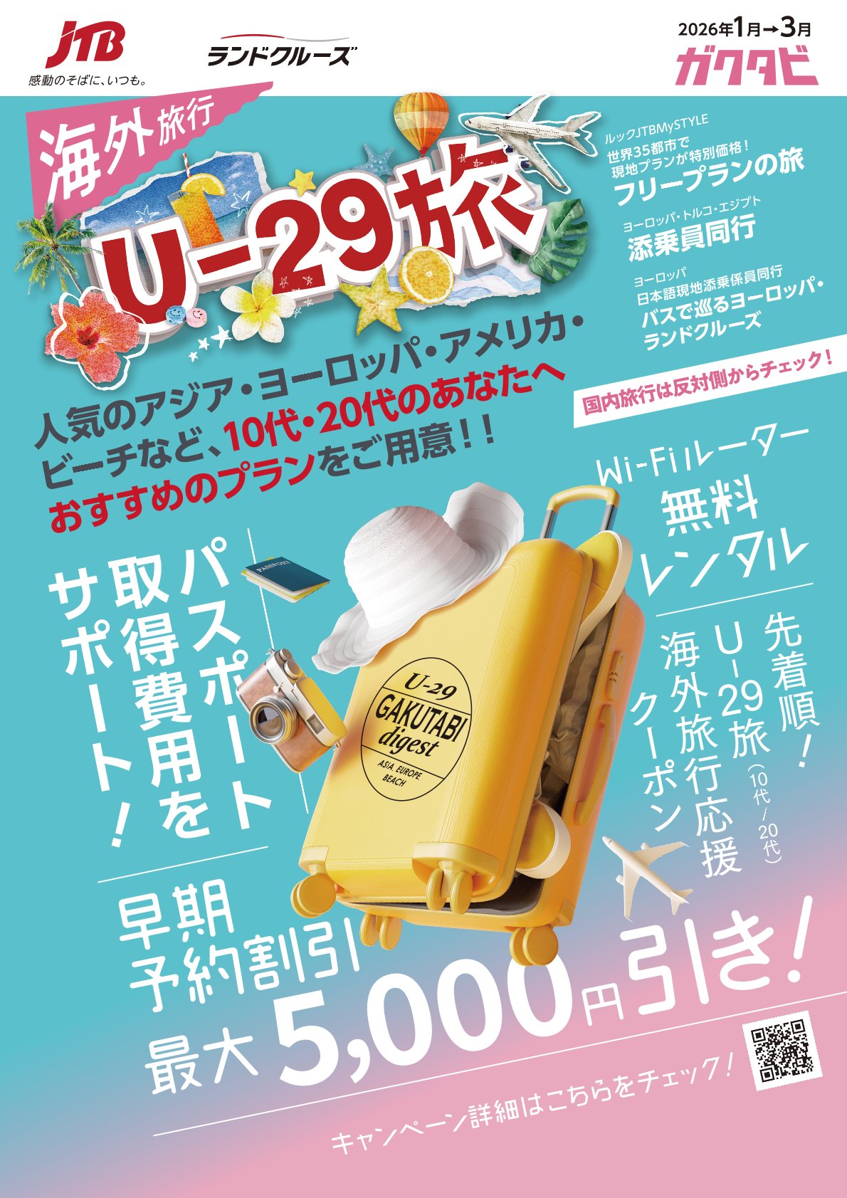 人気のアジア・ヨーロッパ・アメリカ・ビーチなど、10代・20代のあなたへオススメのプランをご用意!!📢