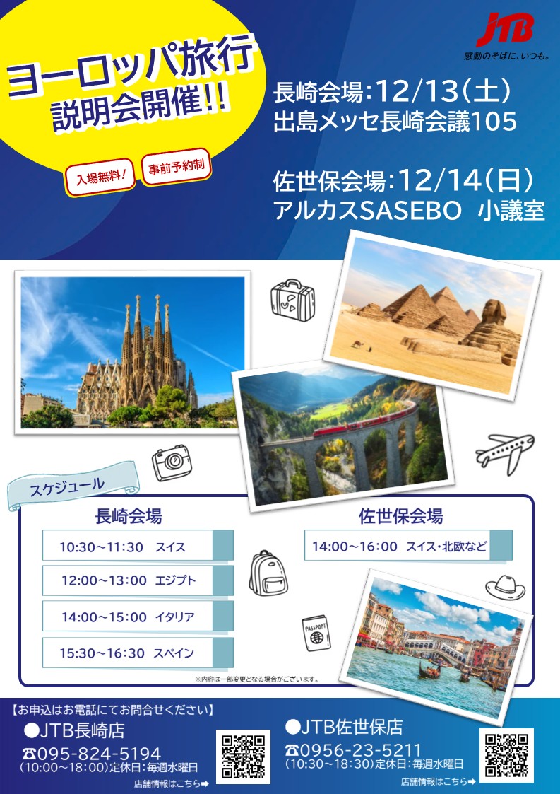 詳細・ご予約は JTB長崎店までお気軽にお問い合わせください!