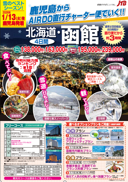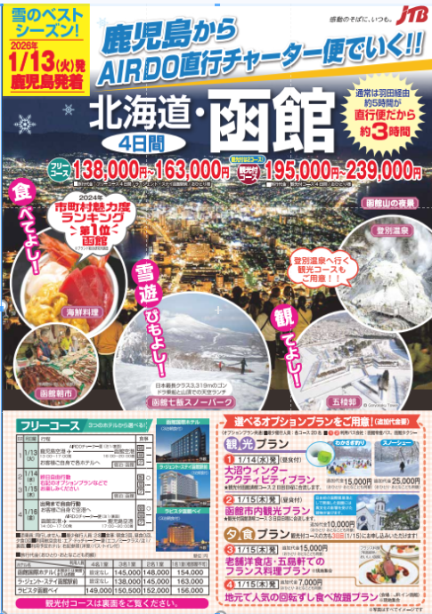 JTBが贈る特別企画―通常は乗り継ぎが必要な函館旅行が、チャーター直行便でぐっと身近に!