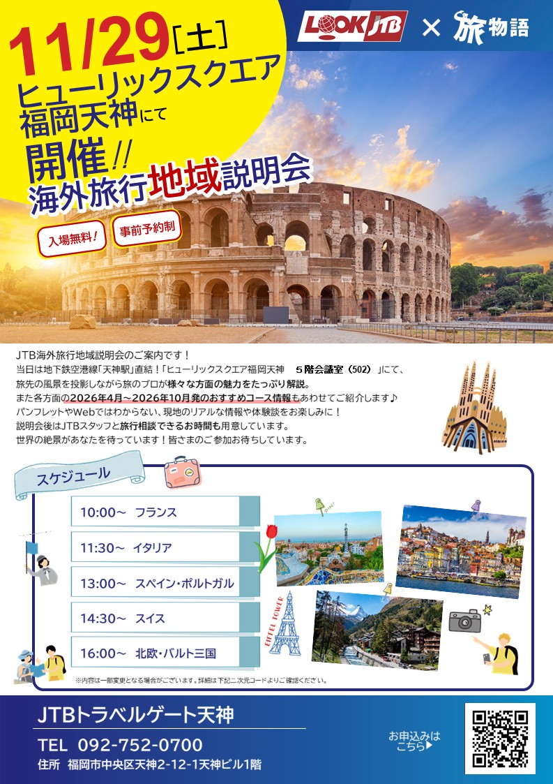 お申込は【11月29日(土)海外旅行説明会開催!!】をクリックしてください🙇♀️