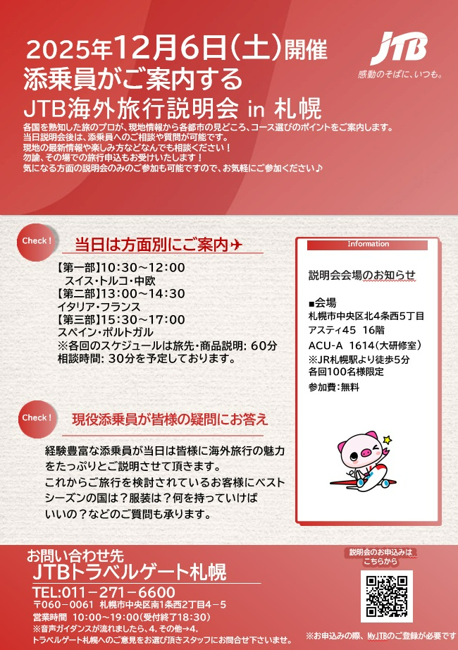 JTB トラベルゲート札幌 JTB イオンモール札幌平岡店 JTB イオンモール札幌苗穂店