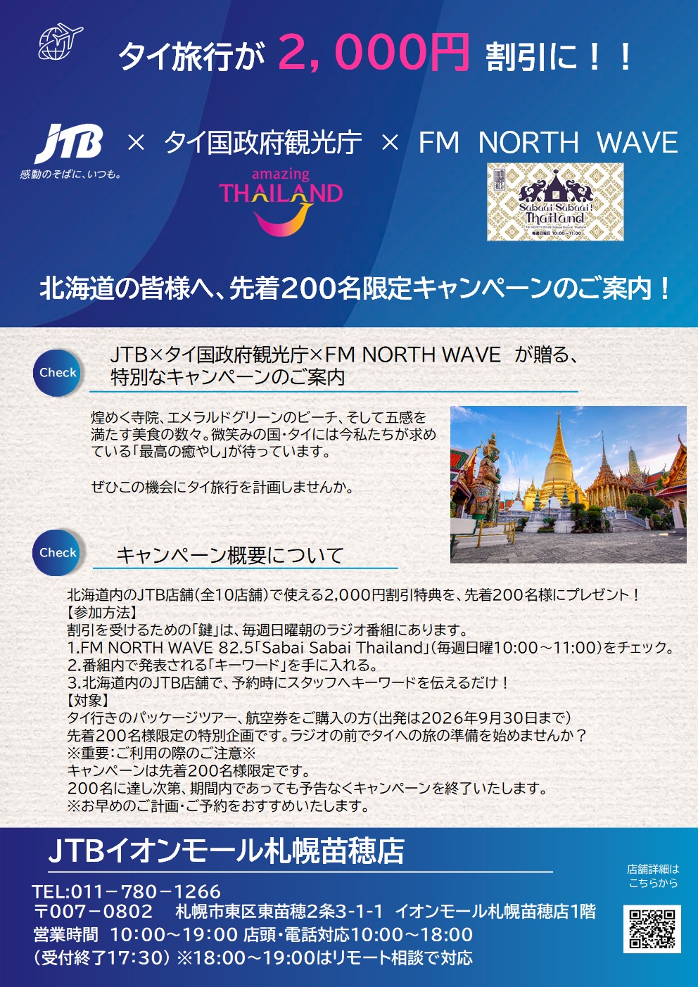 先着200名様限定の特別企画です。 ラジオの前でタイへの旅の準備を始めませんか?