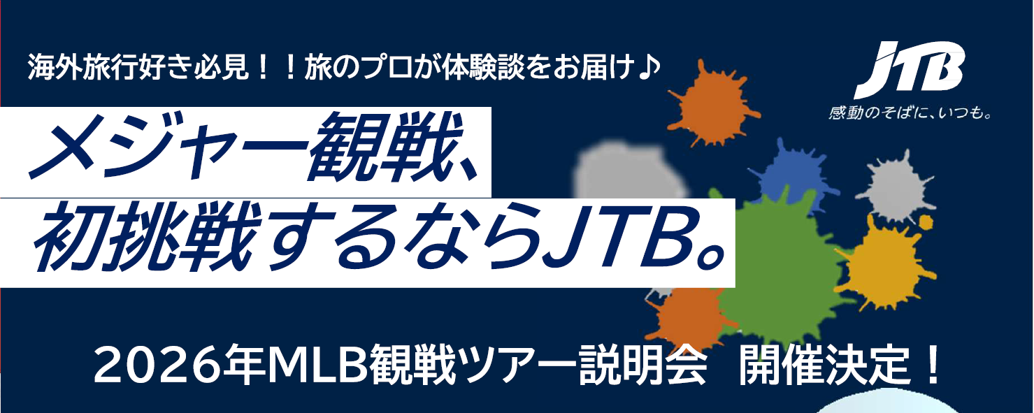 JTBはMLB™(メジャーリーグベースボール)のアジアにおけるトラベル&ホスピタリティ事業のオフィシャルパートナーです。さらに、2025年に日本の旅行会社として初めての「オフィシャルパートナー・オブ・ザ・ロサンゼルス・ドジャース」となりました。