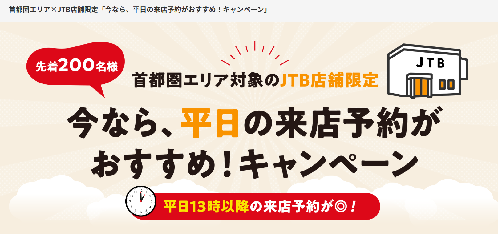 対象のお客様 平日13時以降の時間帯で来店予約いただいたお客様で、対象店舗でキャンペーン期間中に海外旅行を新規でお申し込みいただいたお客様