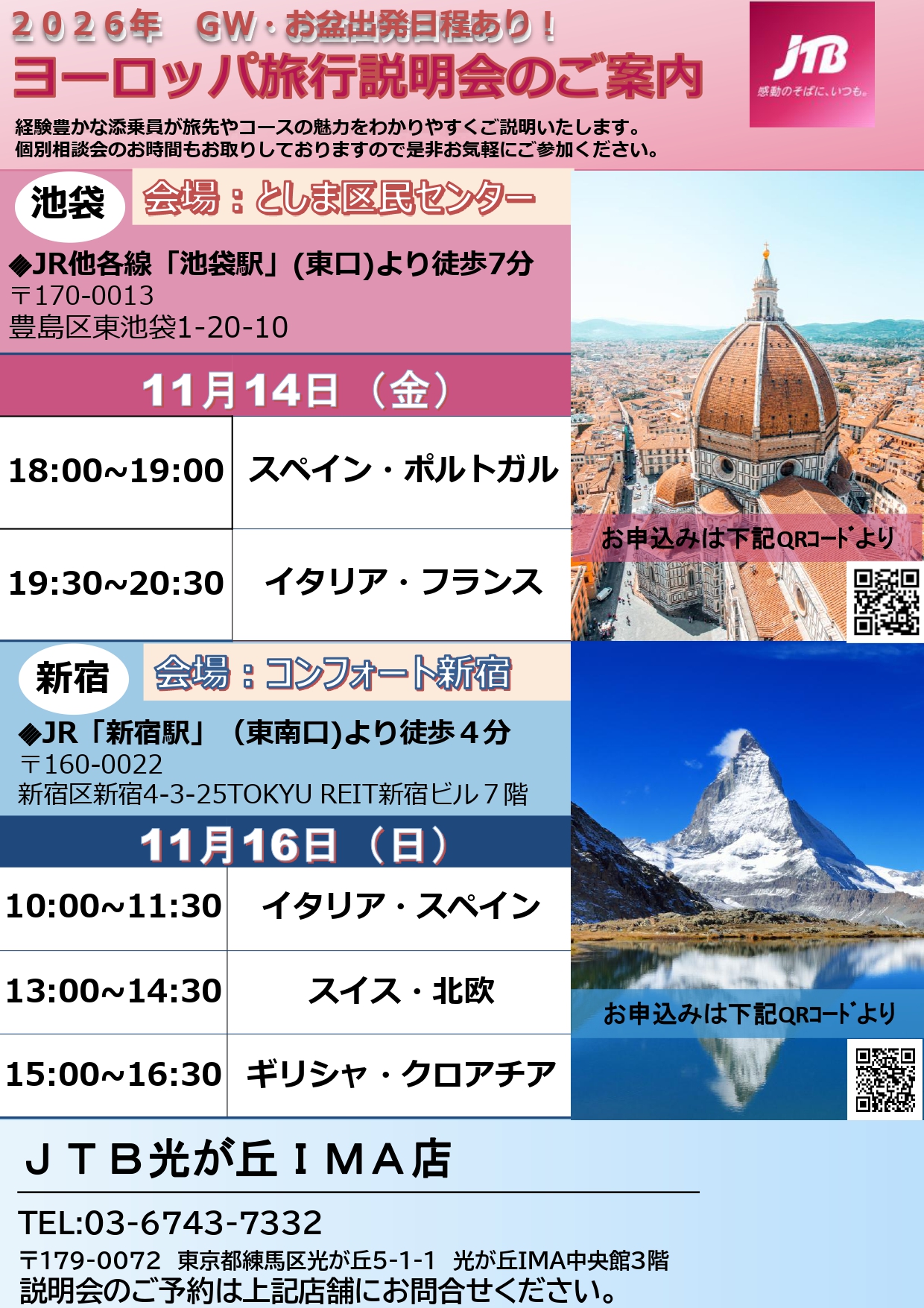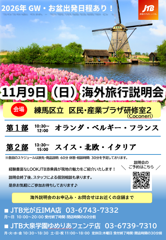 ご予約は是非、JTB光が丘IMA店までお待ちしております★