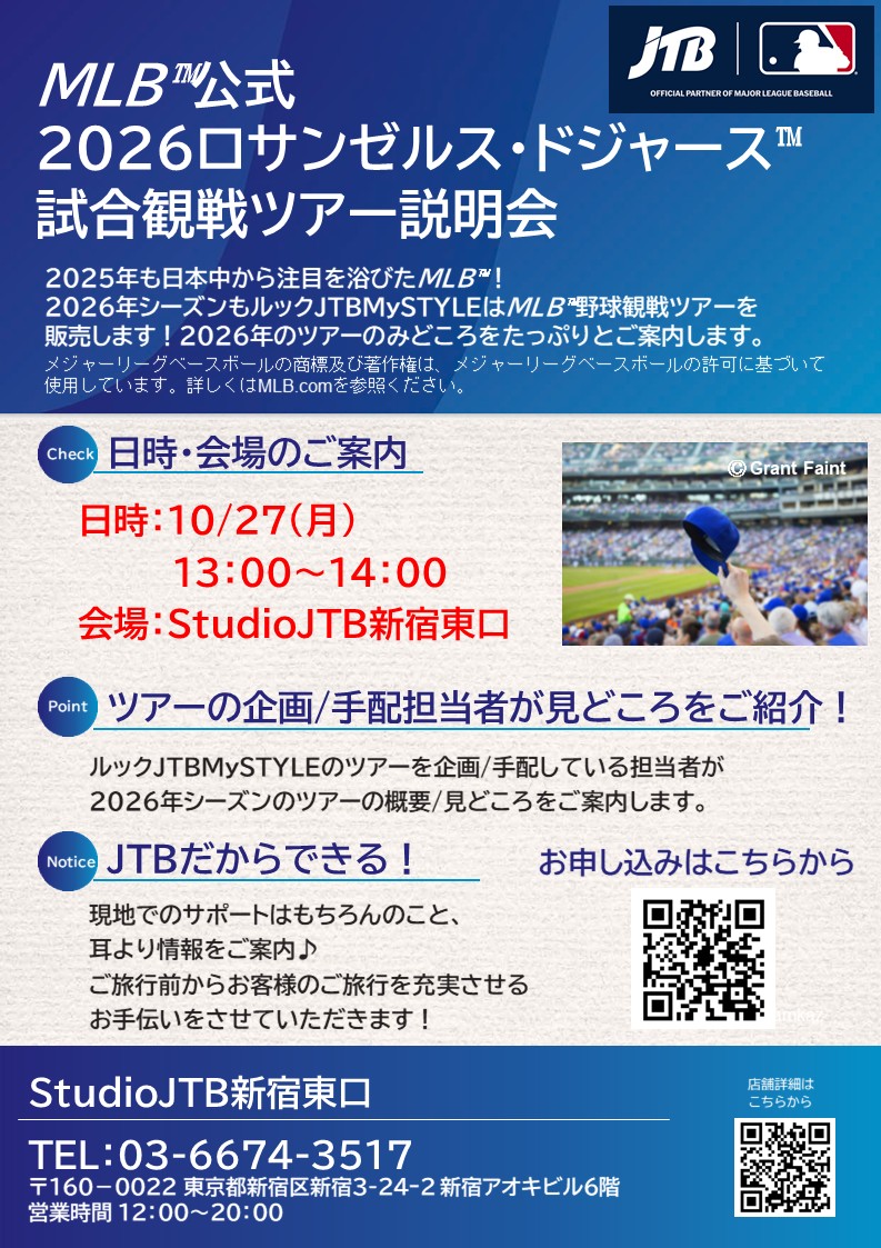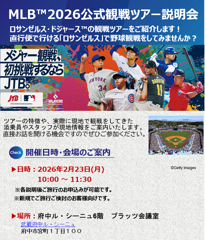 JTBはMLB™(メジャーリーグベースボール)のアジアにおけるトラベル&ホスピタリティ事業のオフィシャルパートナーです。さらに、2025年に日本の旅行会社として初めての「オフィシャルパートナー・オブ・ザ・ロサンゼルス・ドジャース」となりました。