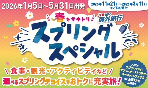サマー、オータム、ウィンタースペシャルに続きスプリングスペシャル発売中。年明け以降のご旅行をお得に楽しむならこのプラン!