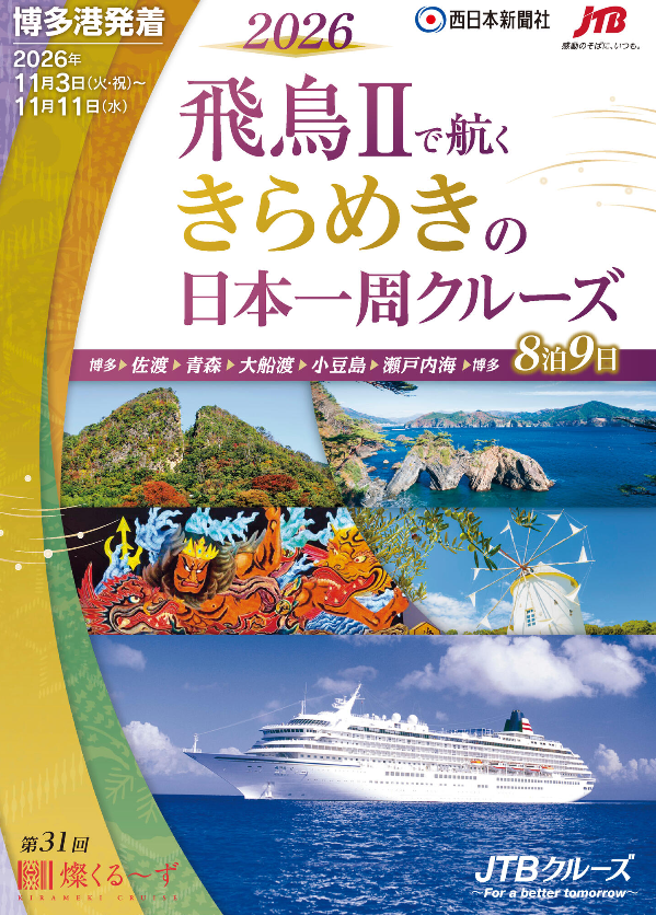 日本有数のロングセラーであり、31回目を迎える燦くる~ずは、「文化の日」の出航にふさわしい好奇心を刺激する、歴史、文化、美しい自然とその地の成り立ち、秋の魅力に出会う旅。