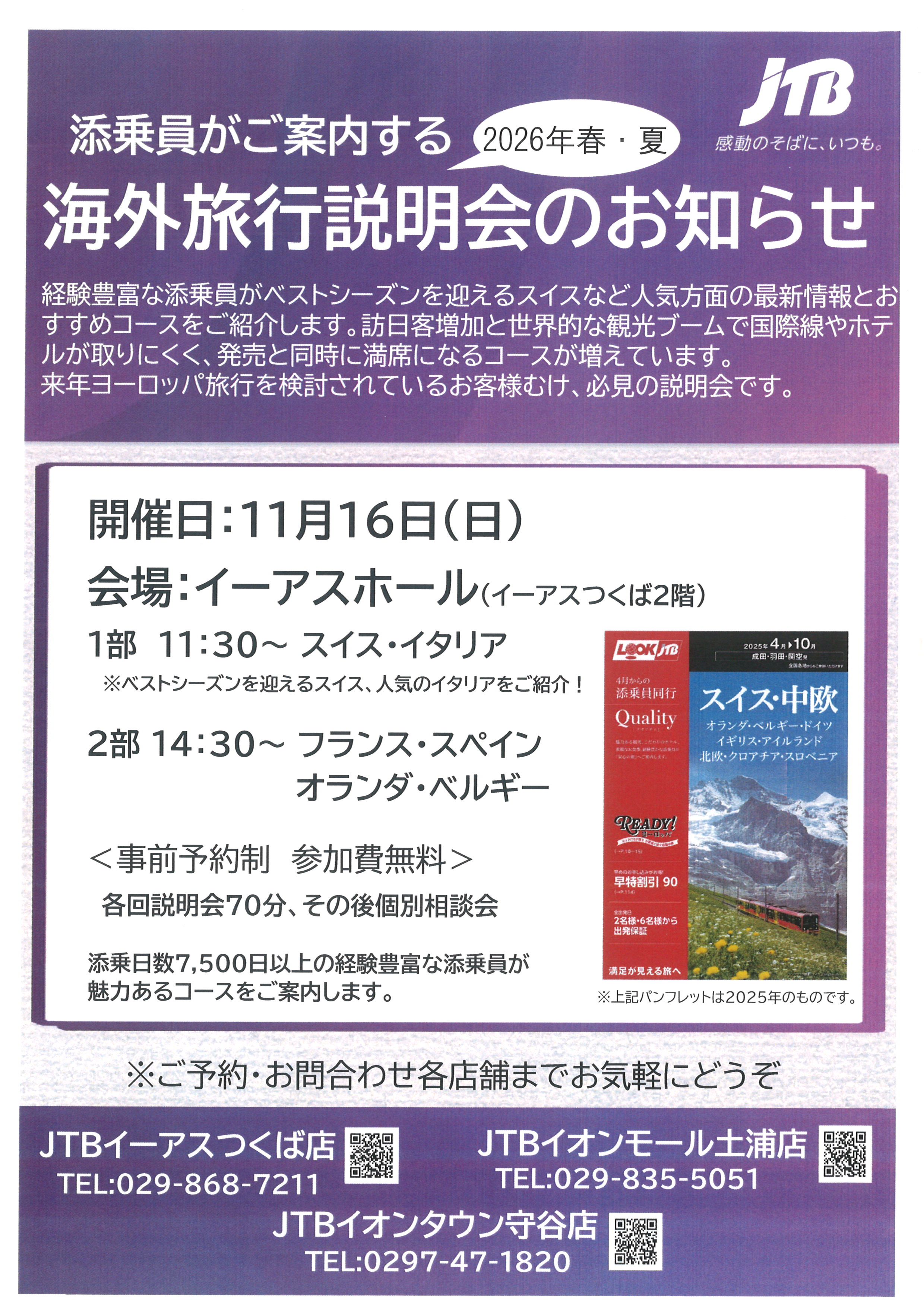 最寄りのJTB店舗で旅の相談&お支払いをすることができますよ。(*)