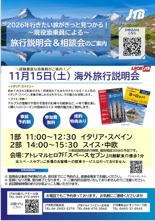 直接の際はJTBマルイファミリー志木店とお伝えください★